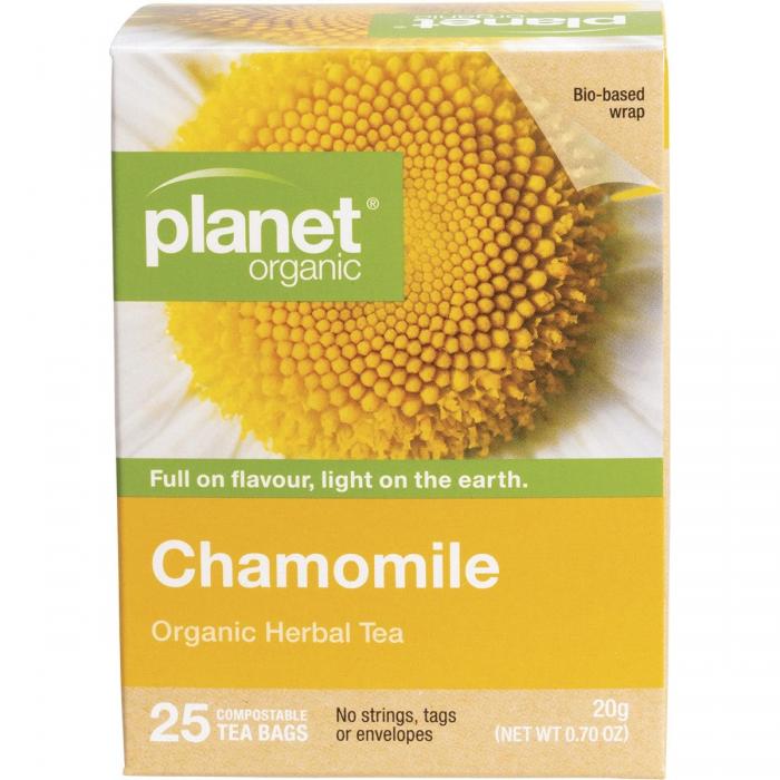 Planet Organic Chamomile Herbal Tea is produced from organic chamomile flowers of certified herb gardens. Enjoy the delicate taste and character of this classic herbal tea.