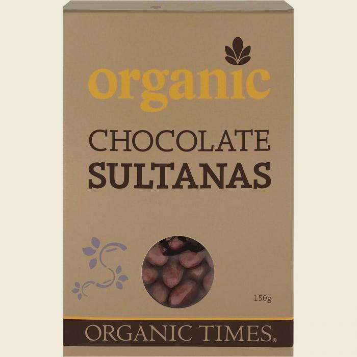 Sweet and nutritious Australian organic sultanas coated in couverture milk chocolate.