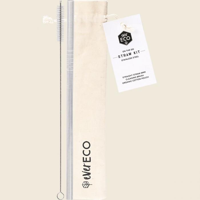 -Includes certified organic cotton drawstring pouch, straight stainless steel straw and cleaning brush