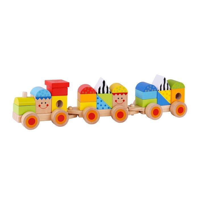 "Learning & Developmental Activity & Educational Preschool Toys - Stacking Train The colourful wooden train is the main attraction. Packed with exciting colours and patterns. Beautiful blocks and sturdy carriages, all pieces can be taken out and swapped around. Each wooden colourful train is individually boxed. Wooden pieces are made of a mixed of beech wood and MDF. Painted with non toxic paint. Suitable for children from the age of 18+ months Content: Train x 3, Wooden Block x 23"