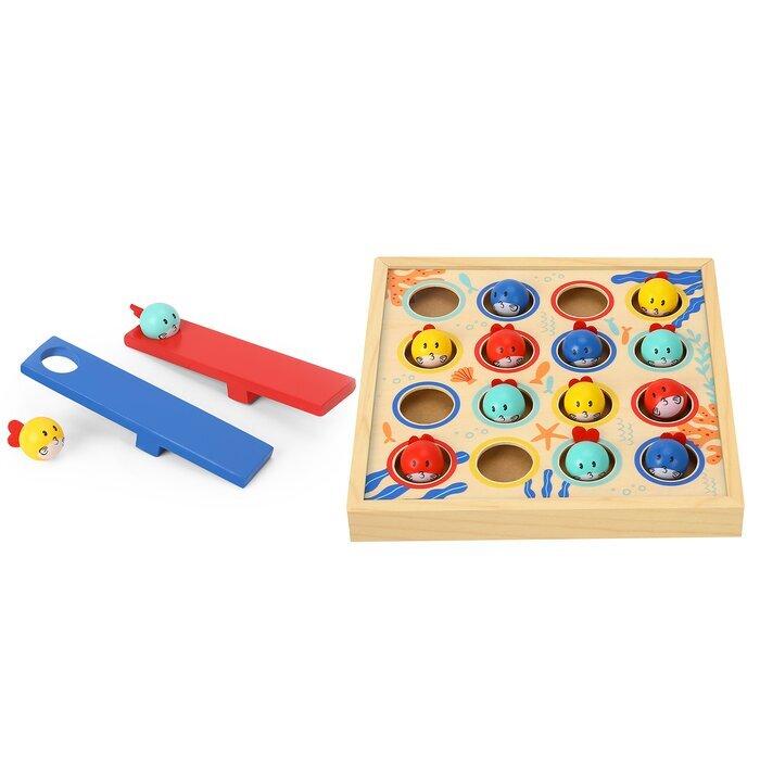 "Learning & Developmental Activity & Educational Preschool Toy - Small Fish Diving Get the family together for this flipping good fun fish table top board game from Tooky Toy. The challenge of this game is to take turns to successfully launch a fish from the springboard and land them in the corresponding coloured hole. Don't flip too far as these fish can really go flying. Be the first person to get all your fish in a hole and you'll win the game. Try and anticipate the trajectory, its not easy, but it is fun! The wooden Small Fish Diving Board Game from Tooky Toys is made from timber and finished to the highest quality. This game is painted in child safe, non toxic paint. Age Recommendation: 3 Years + Content: Accessories x 16, Launcher x 2, Wooden Board x 1"