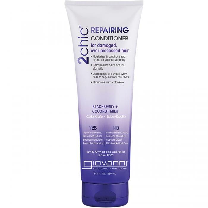 How to be 2chic: After cleansing with 2chic Repairing Shampoo, massage in Giovanni 2chic Repairing Conditioner from roots to ends, coat each strand, wait three minutes, and rinse. Replenished hair at last.