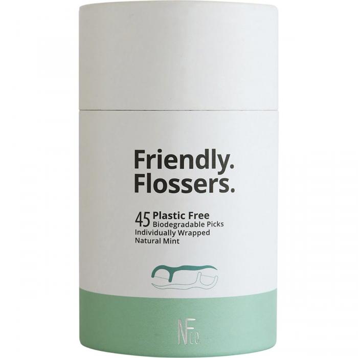Complete your oral care routine with NFco Friendly Flossers with Plastic Free Cornstarch handles and a natural mint flavour.