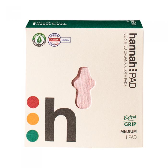 Medium pad with extra grip feature is perfect for everyday use on regular flow. hannahpad Medium is similar to a Regular size in disposable pads.