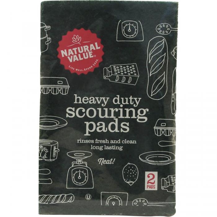 Natural Value Heavy Duty Scouring Pads (3.8" x 6" x 0.3" each) are designed to remove stains and heel marks from tile, wood and linoleum floors, clean grills and grates, clean whitewall tires and garden tools, clean ovens and broilers and clean wood and metal lawn furniture.