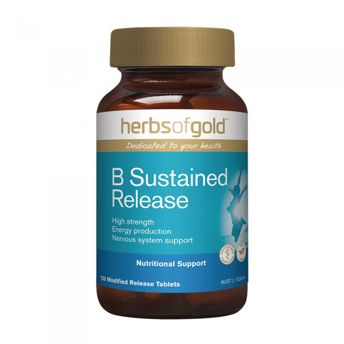 Herbs of Gold B Sustained Release contains a combination of B vitamins to support energy production and a healthy stress response in the body.