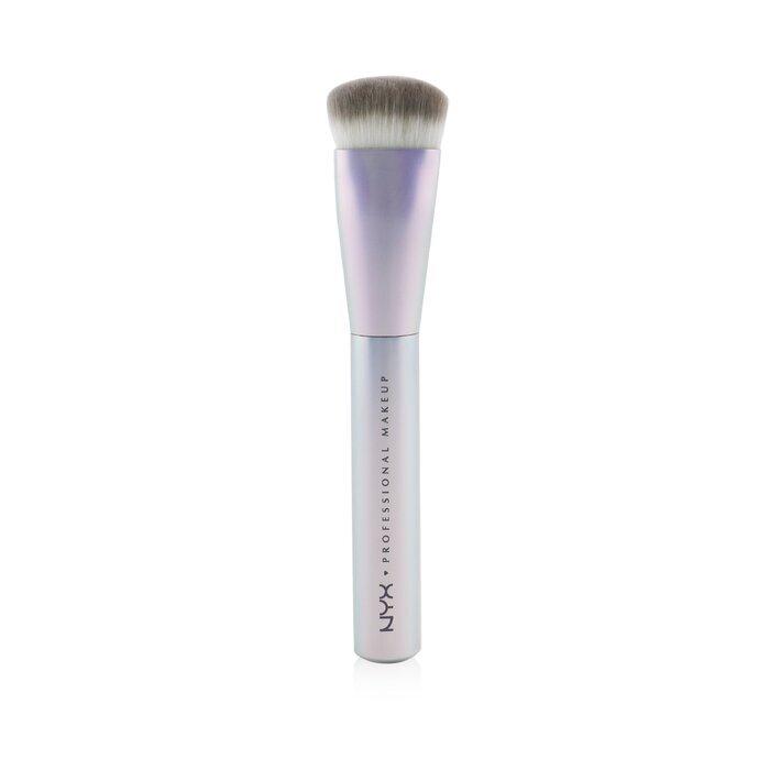 Features super-soft white synthetic bristles & a holographic handle Designed for buffing liquid & powder highlighters on the skin The soft angled head hugs the facial contours