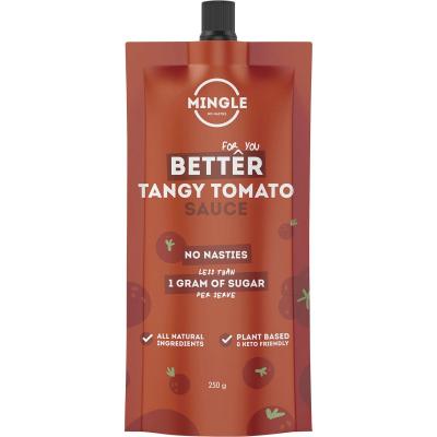 Mingle's Sauce range has only 1 gram of Sugar per serve. Mingle's Tomato sauce is extra tangy, a little ketchuppy (yes that's a word) and have some homestyle relish vibes about me. Use me on everything, I am going to take the place of that old school bottle at your table. Ingredients: Tomatoes (71%) (Reconstituted Tomato Puree, Tomato Paste), Onion, Vinegar, Apple Juice,Tapioca Flour,...