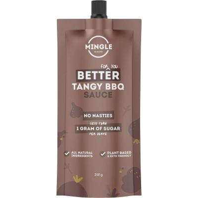 Mingle's Sauce range has only 1 gram of Sugar per serve. Mingle's BBQ Sauce is extra tangy, people say I am a bit like a tomabbq sauce (yes, thats a hybrid like a cronut - we are on trend) and have some maple and smokey flavours. I am going to take the place of that old school bottle at your table. Ingredients: Tomatoes (Reconstituted Tomatoes, Tomato Paste), Vinegar, Mustard,...