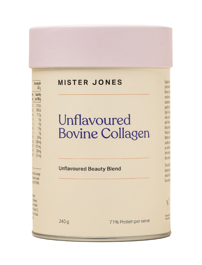 Discover the secret to radiant natural beauty with Mister Jones Bovine Collagen. With 5,000 mg of Bovine Collagen per serve, our bioactive formula works to reduce fine lines, improve skin moisture, and combat the visible signs of ageing – naturally. Our thoughtfully crafted blend doesn’t stop at collagen. It includes essential cofactors like Zinc, Activated B6, and Vitamin C to support...