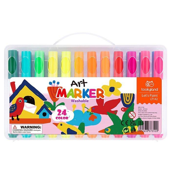 "Learning & Developmental Activity & Educational Preschool Toys - Washable Marker - 24 Colors, Colour and create your own amazing drawings and illustrations with the 24 colour washable markers from Tookyland. This pack of coloured washable markers are a great addition to any art supplies and draw thick, rich colours on paper. With 24 colours to choose from, you can create a masterpiece of colours. Create art at home and they also come in a handy travel case for easy transport. The 24 Colour Washable Markers from Tookyland has been specially designed to spark creativity and stimulate young minds. Each marker is filled with quality materials to inspire any budding young artist and can be wiped off skin and walls and washes out of fabric. Age Recommendation: 3 Years + Content: Marker X 24"